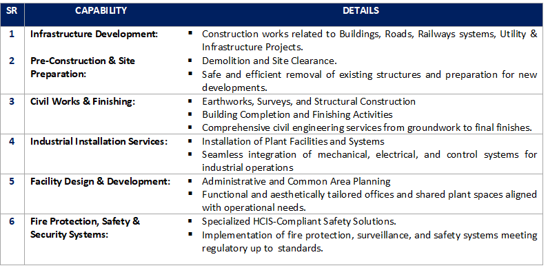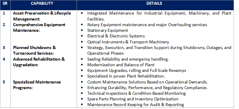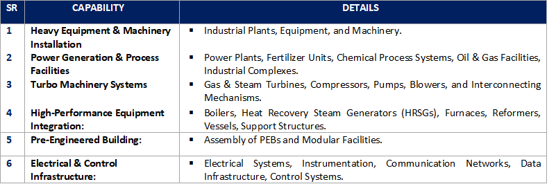 Engineering, Project Management, Construction & Maintenance Engineering Management Project Management Construction Management Maintenance of equipment, Machines (Plants Services) Installation of Equipment & Machines